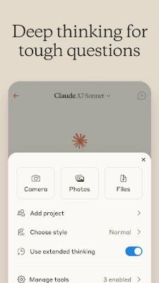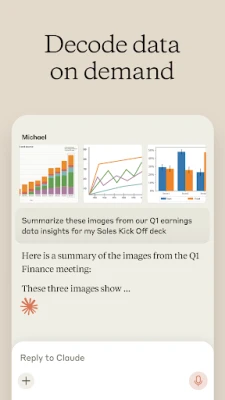 With Claude you have a world of intelligence right in your pocket. Just start a chat, attach a file, or send Claude a photo for real-time image analysis.
